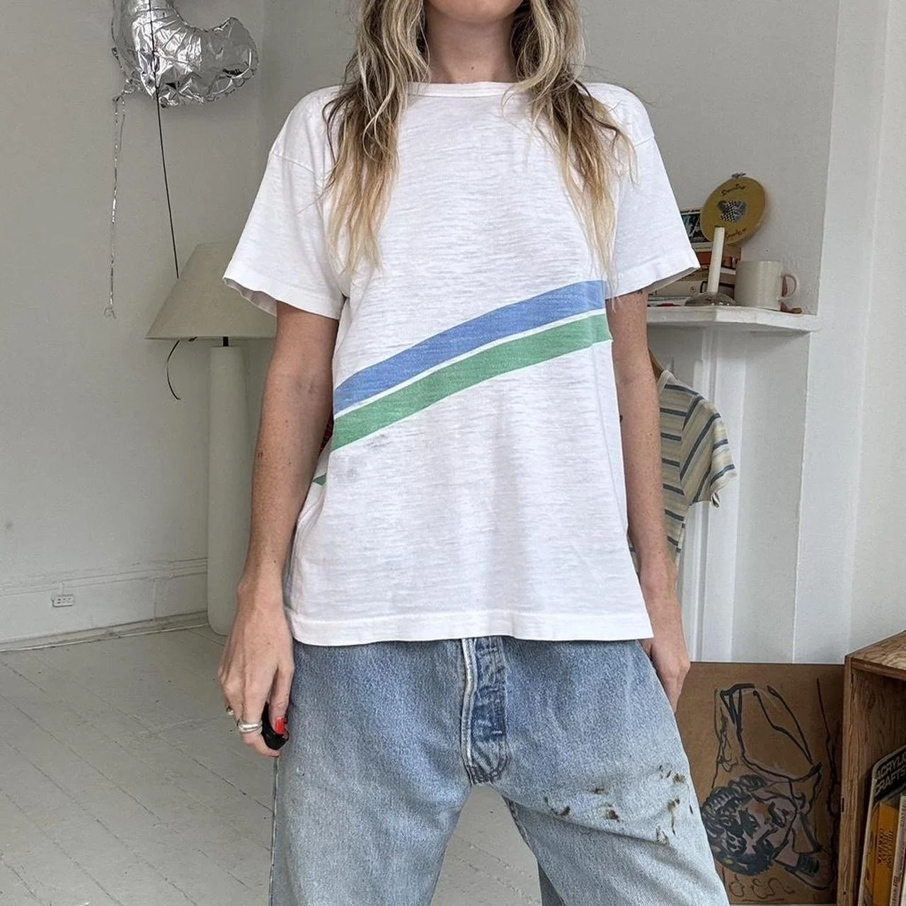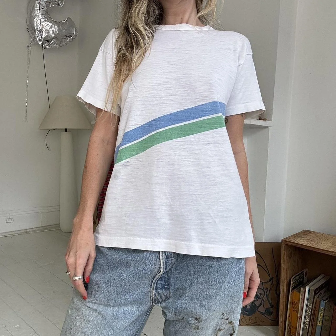 shop › 1970’s Cotton Tee (S) Image 1 of 4 Image 2 of 4 Image 3 of 4 Image 4 of 4 1970’s Cotton Tee (S) $110.00 Super soft cotton striped vintage 1970’s t shirt fits like a small Add To Cart Added! Super soft cotton striped vintage 1970’s t shirt fits like a small