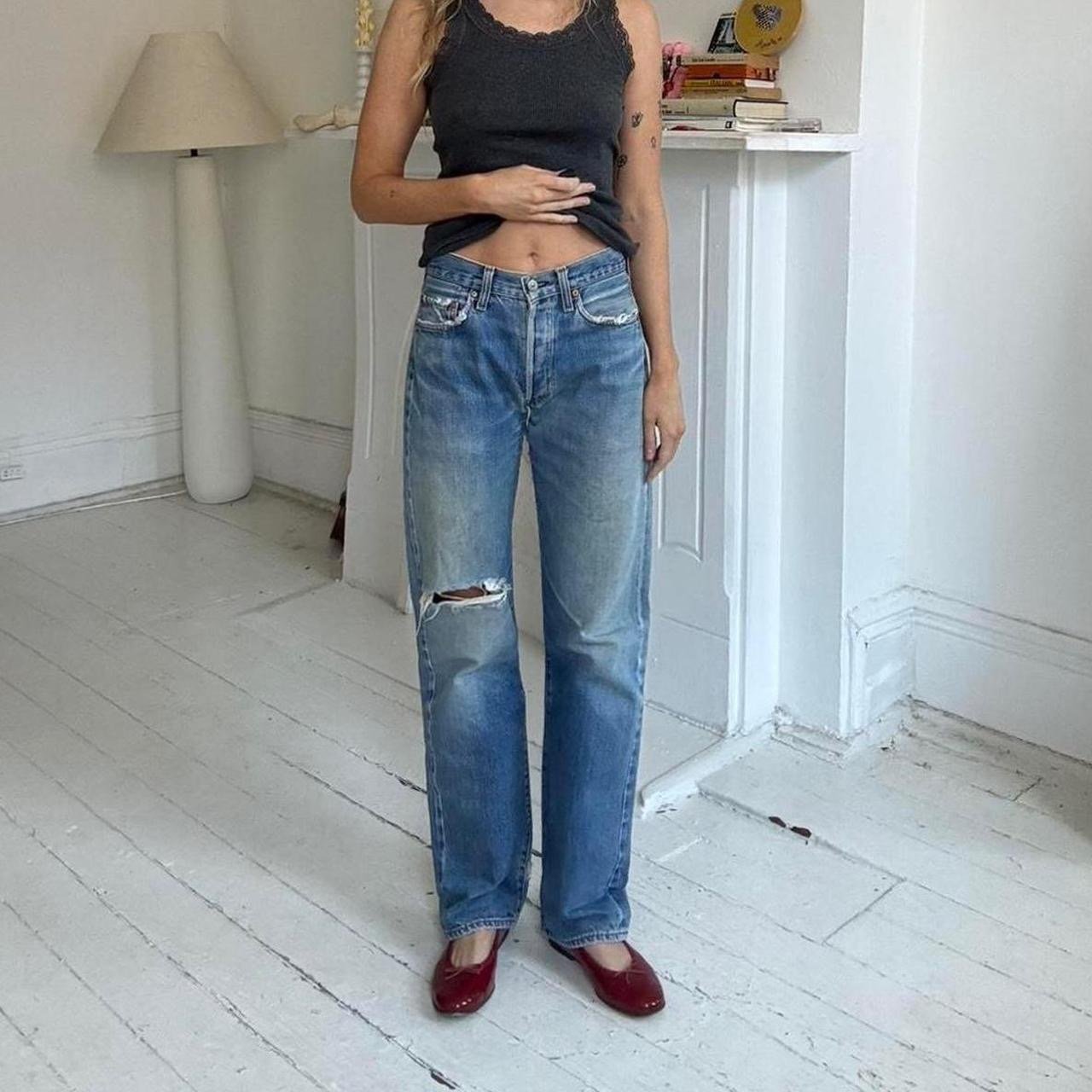 Levi’s 501 (Year 1993) Valencia Factory (555) Big E Distressed Jeans. Butter soft denim. Perfect loose fit.