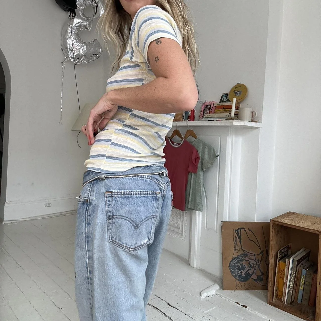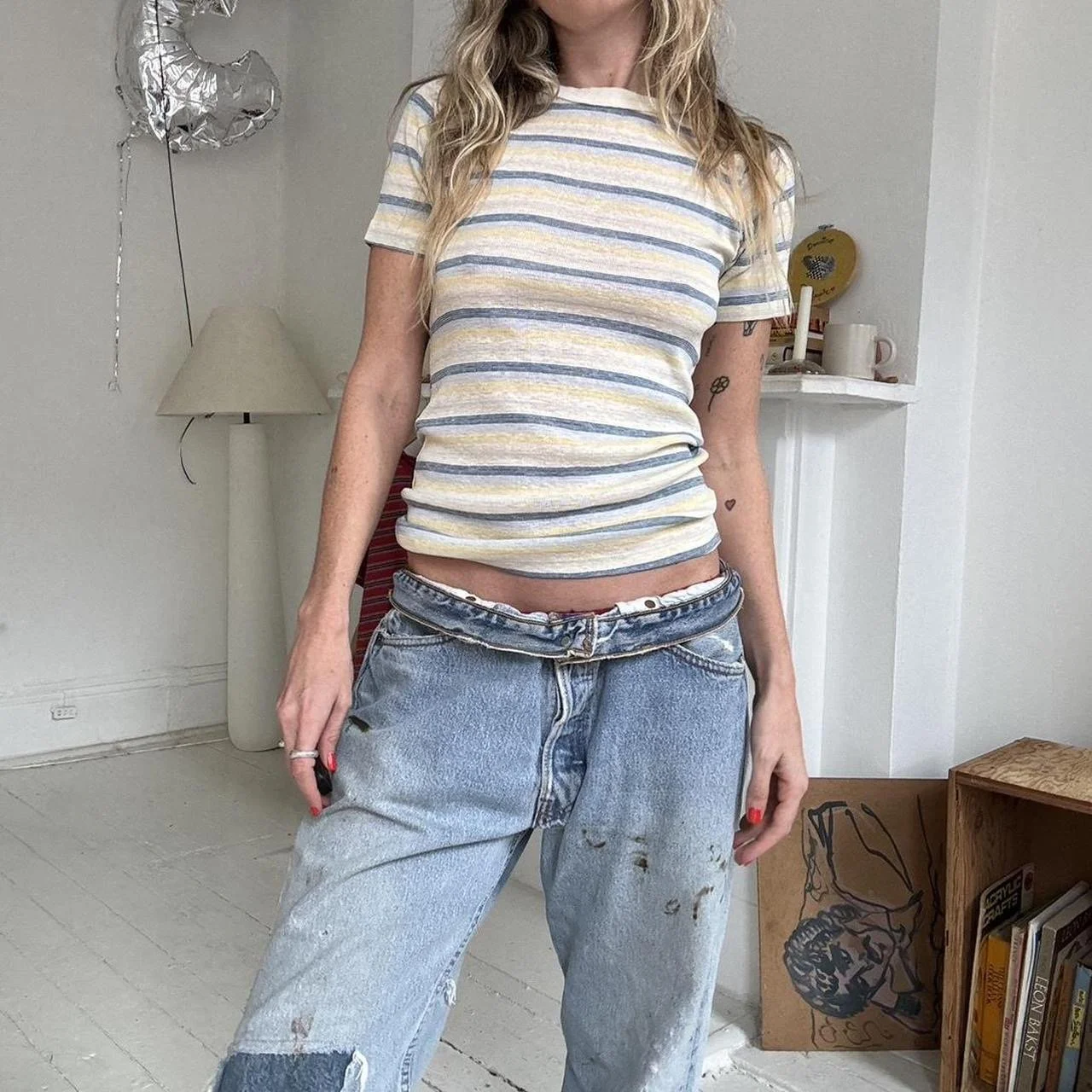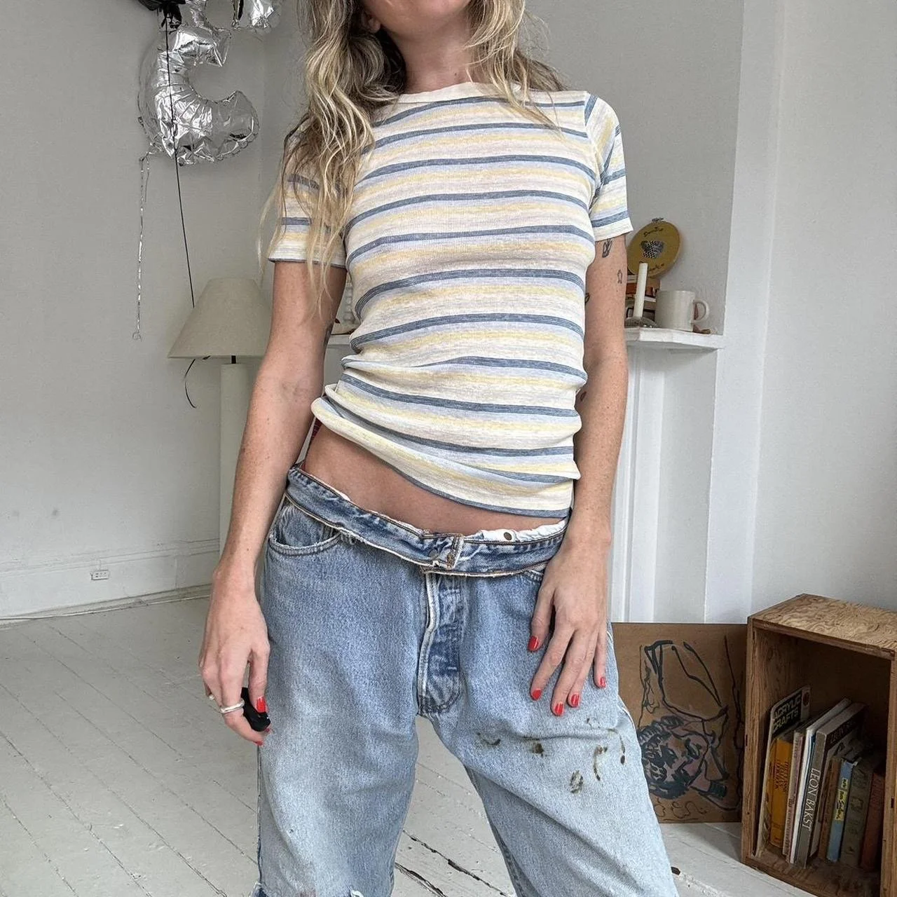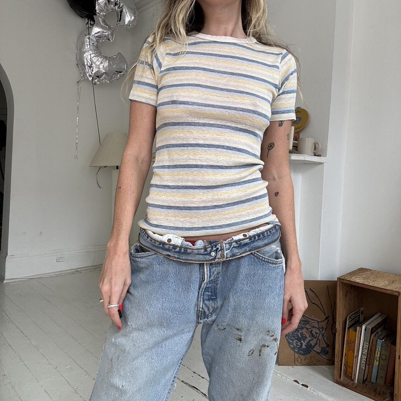 shop › 1970’s Striped Tee (XS) Image 1 of 4 Image 2 of 4 Image 3 of 4 Image 4 of 4 1970’s Striped Tee (XS) $110.00 vintage striped crew t shirt fits like an XS 1970’s Quantity: Add To Cart Added! vintage striped crew t shirt fits like an XS 1970’s